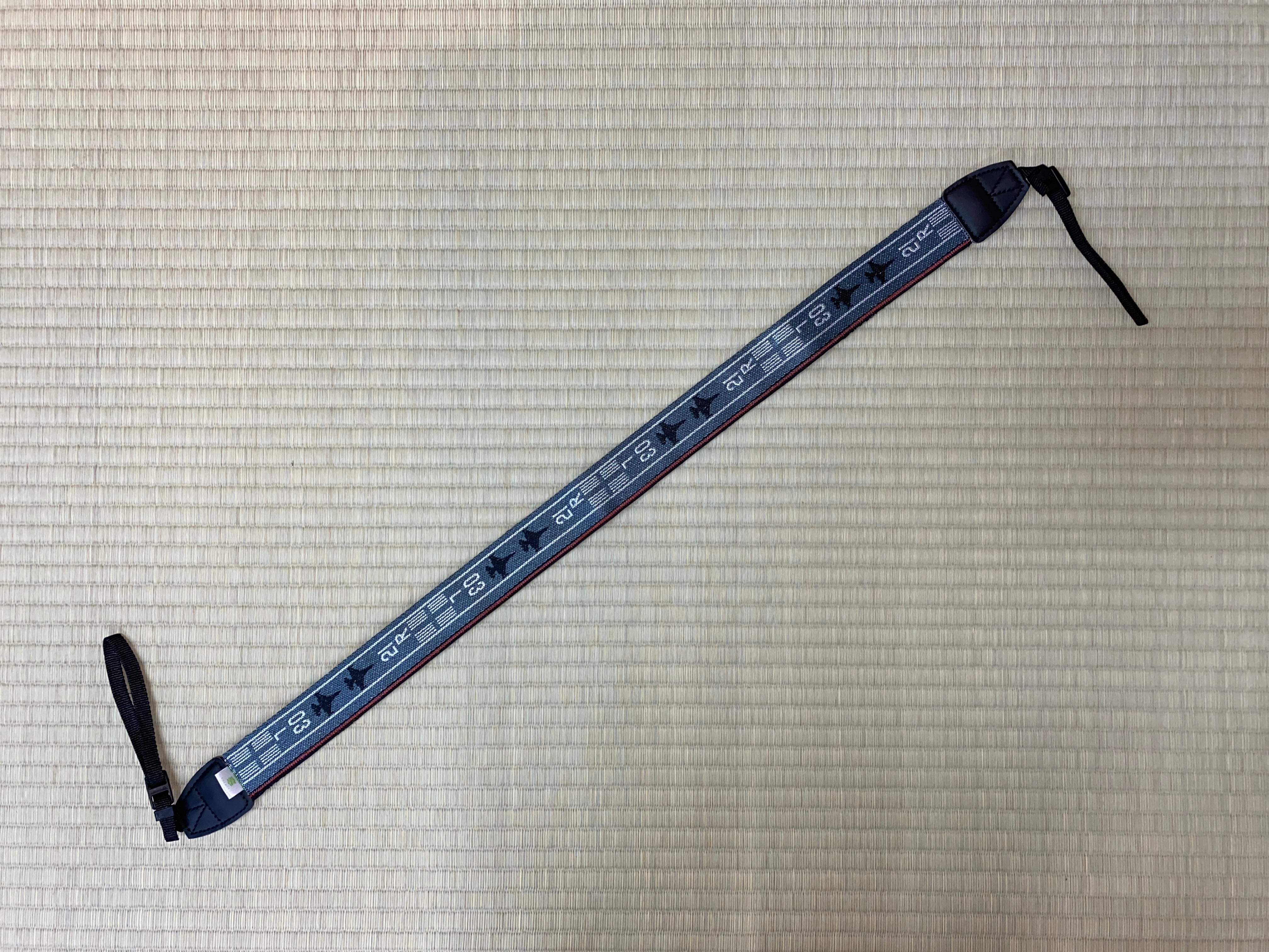 オリジナル畳縁ランウェイシリーズ「F2百里基地」を縫い付けたカメラストラップです。