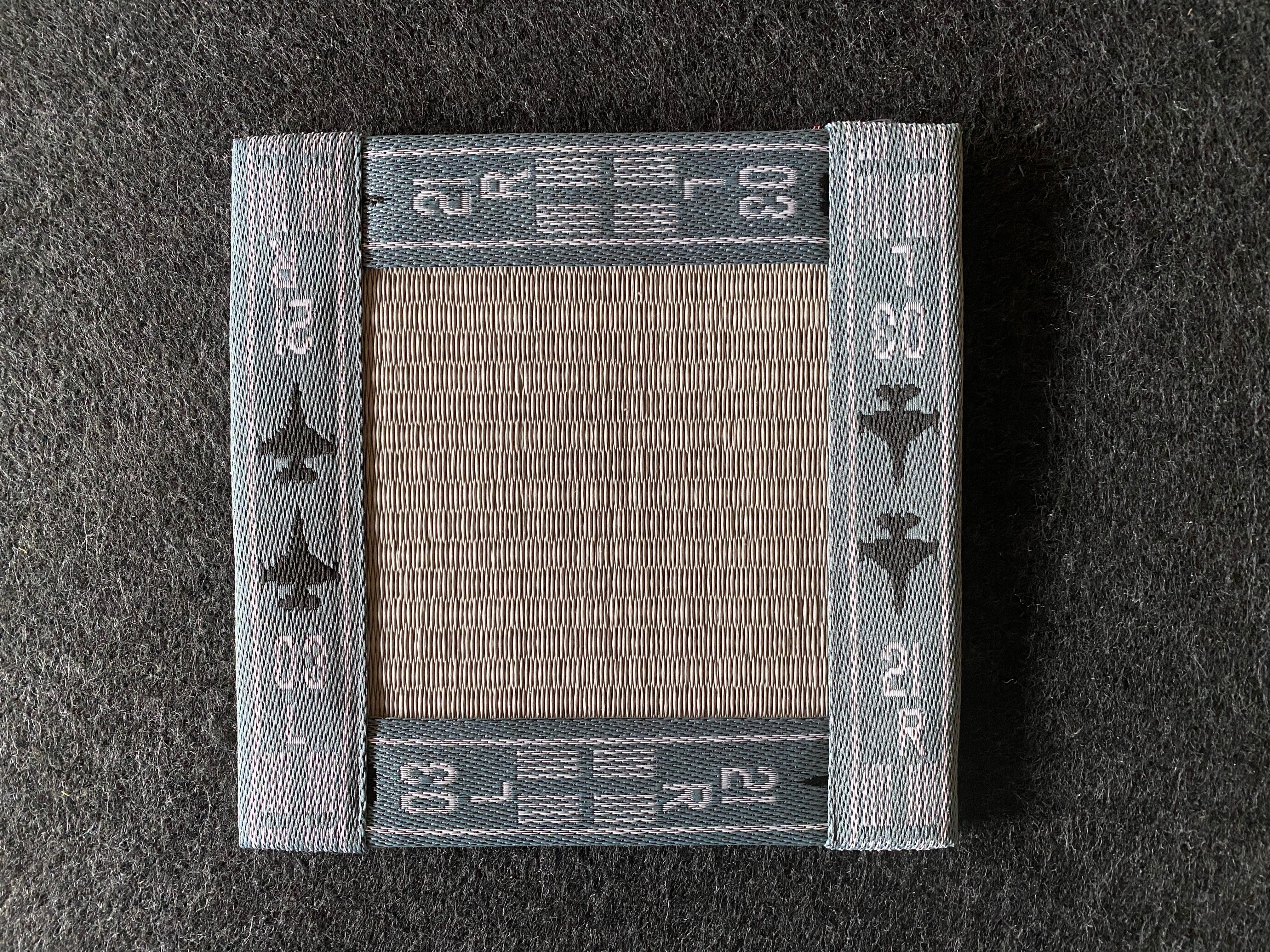 日焼けしない和紙製畳表(グレー)にオリジナル畳縁「RWシリーズ百里基地」を縫い付けました。